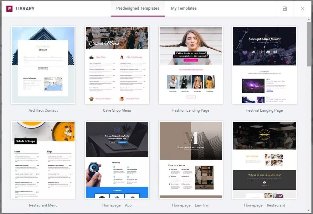 Elementor Pro (the paid version) comes with a selection of some high-quality pro templates. The Elementor templates can be easily imported into your pages, after which they can be customized to meet your individual needs.