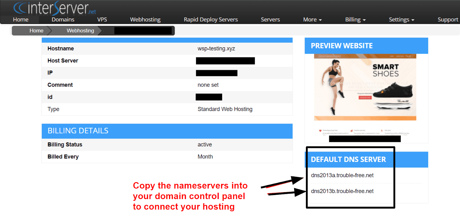 After the account activation debacle, I found myself a little less enamored with the service. What else was going to go wrong? Luckily, it was smooth sailing from that point onward. I found InterServer’s nameservers in my account area, and after updating them in my Namecheap dashboard, my hosting was connected in no time.