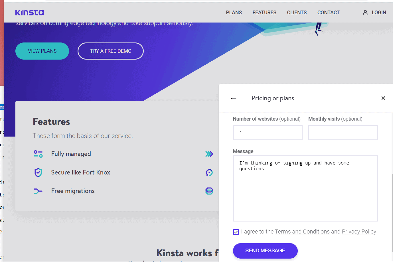 After signing up, the situation got much better. Kinsta has real 24/7 support through live chat and phone, and even through chat, I never ended up waiting for more than a minute. There’s a weird bug where sometimes the replies don’t show up, but refreshing solves that (so just refresh after one minute).