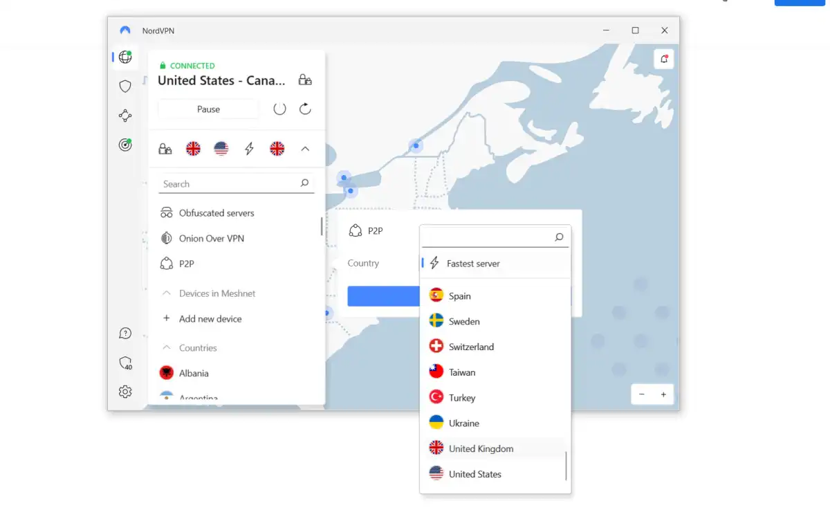 The apps all have the same easy-to-use interface and let you scroll around a map to pick your location or browse from a list of countries. As an aside, although there’s Linux support, NordVPN doesn’t offer a nice GUI like Surfshark does, so you’ll have to use Terminal commands, or third-party GUIs created by fans.